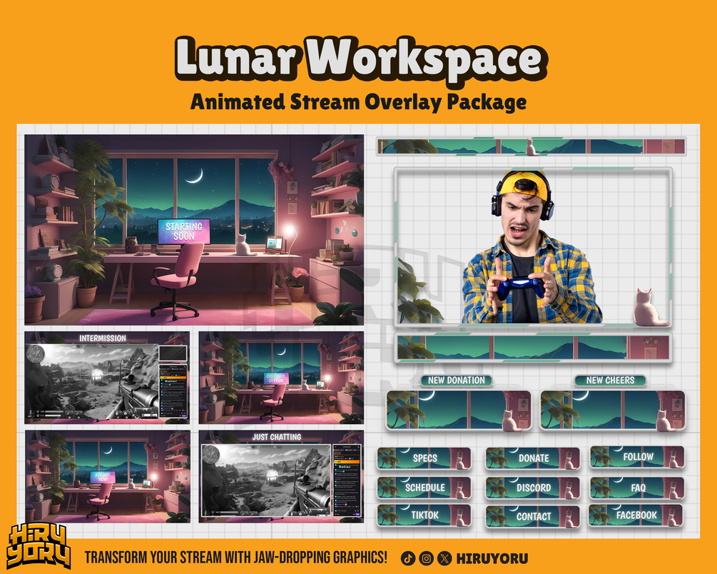 Lunar Workspace Animated Stream Overlay Package for Twitch, Youtube, kick
