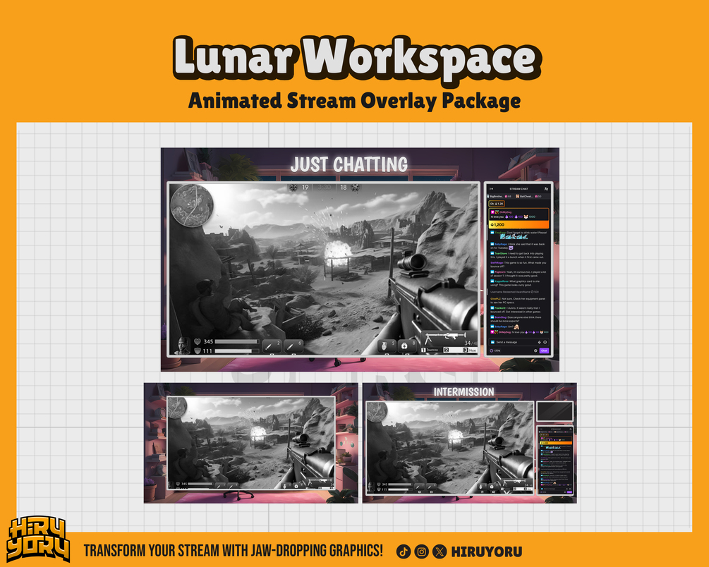 Lunar Workspace Animated Stream Overlay Package for Twitch, Youtube, kick